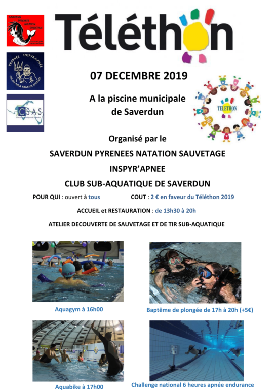 Au profit du Téléthon, le SPNS organise plusieurs activités le samedi 7 décembre 2019 à la piscine !