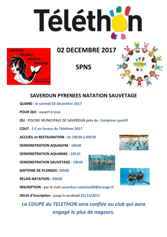 Samedi 2 décembre 2017, de 18h30 à 00h30, le SPNS organise une nocturne avec de nombreuses activités pour le Téléthon 2017.